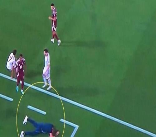 比赛进行到下半场,卡塔尔队主教练洛佩特吉正在场边指挥。突然,他被一记近距离的大力射门直接击中面部,当场倒地,失去意识,一动不动地躺在场边。这一幕让现场气氛瞬间紧张起来,球员和工作人员都露出担忧神色。