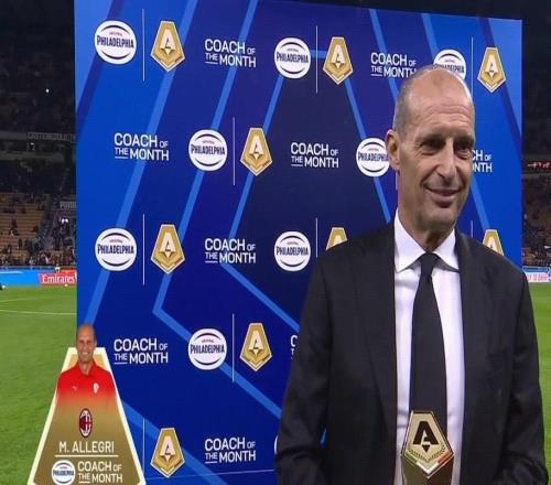 荣耀时刻,阿莱格里领取意甲9月最佳教练奖