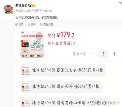 CBA太惨了!新赛季门票被当赠品送:买牛奶送CBA门票