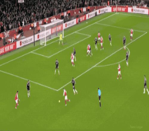 第48分钟,萨卡开出角球,加布里埃尔在马丁内斯的腋下将球打进,这也是阿森纳本场获得的第一个角球。